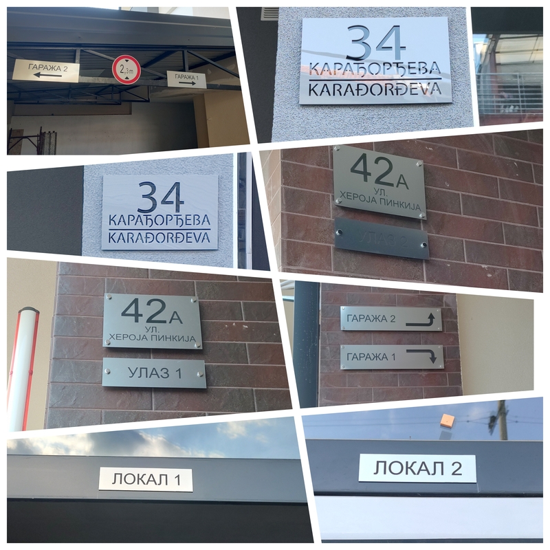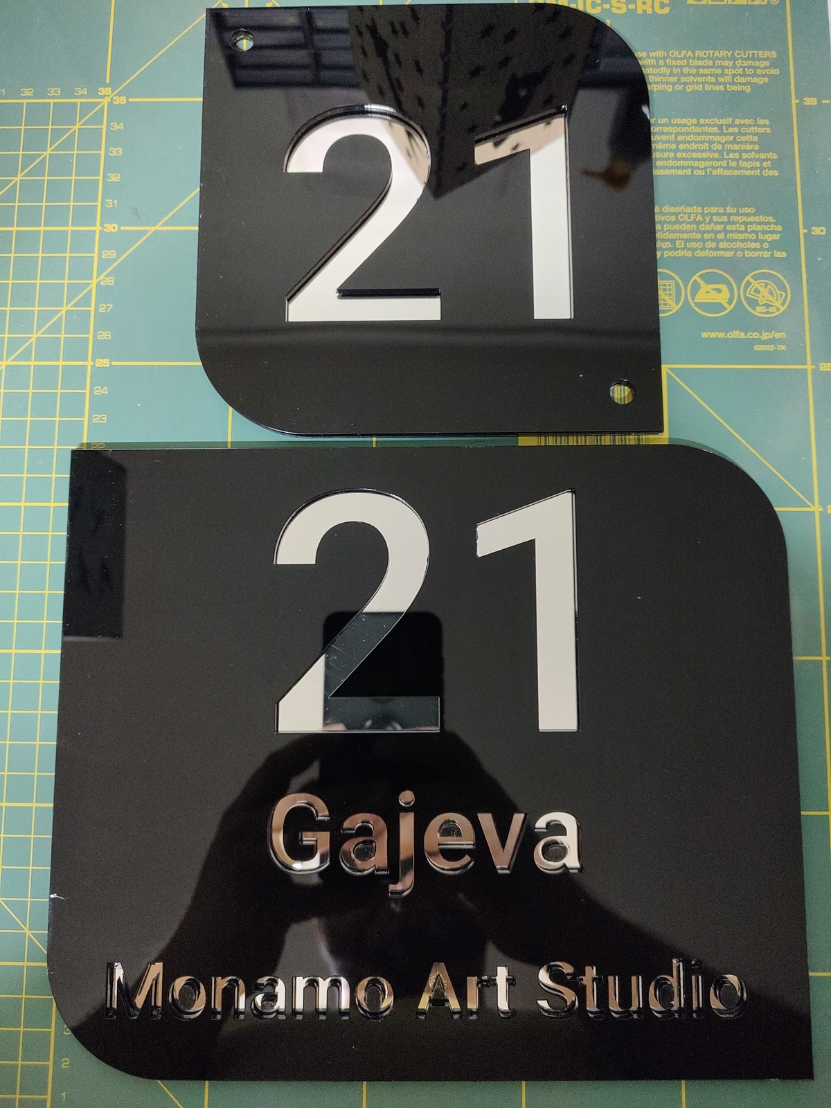 Monamo Art Studio se bavi izradom kućnih brojeva i vertikalne siglanlizacije kao što su znakovi, pločice i brojevi za vrata stanova i posebnih prostorija (kotlarnice, podstanice i sl.), interfona, poštanskih sandučića i oznake kancelarija.